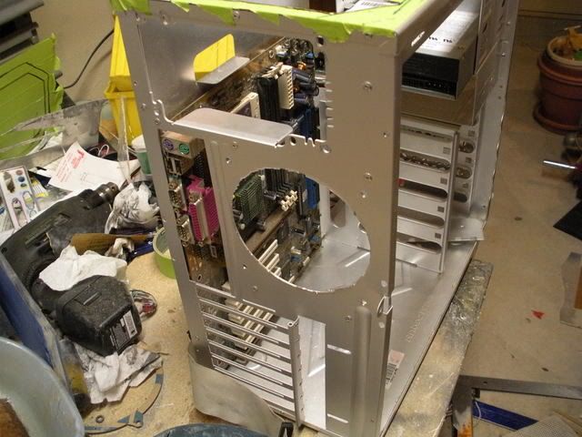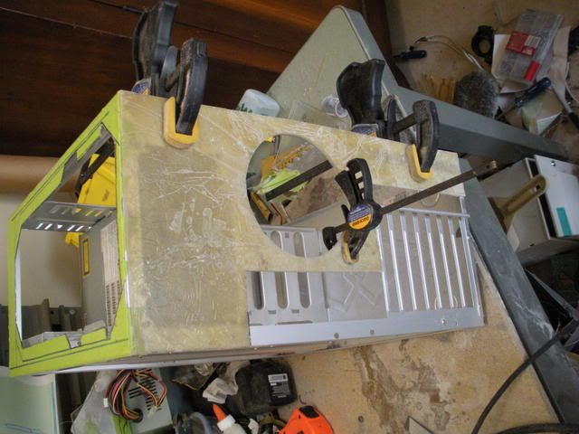 alrighty.. as you know, ive been working away at my motherboard cover mold. i got the sore throat thing goin around and after i got better i decided to take a small break from that and focus on the back of the case a bit and get a lil practice with the fiberglass